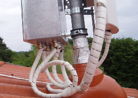 Befestigen könnt Ihr sie dann mit Kabelbinder oder wenn stabiler notwendig mit einem Stahlband, Beilagscheiben und Schrauben. Wird ein Pigtail verwendet, so sollte zum Abdichten und als Korrosionsschutz ein selbstverschweissendes Gummiband verwendet werden. Darüber sollte noch ein UV-beständiges (ALU-)Band gewickelt werden. Da das Antennenkabel bzw. Pigtail nicht geknickt werden darf, müssen oft zusätzlich Bohrungen angebracht werden (siehe auch RouterAntenneKopplung). Zum Abdichten können Würgenippel (Baumarkt) bzw. bei bestehenden Löchern Blindverschraubungen verwendet werden.