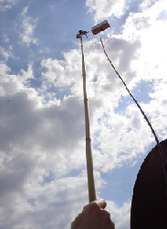 - Ich besorge mir zum Ausmessen eine lange Stange, ca. 2-3m (Besenstiel oder ähnliches), um das Messpanel des Messkoffers daran zu befestigen.